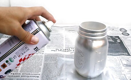 Coat mason jars with glue and Epsom salts to make snow lanterns. Fill a tray with Epsom salt and set it aside. Mix 3 parts white school glue with 1 part water. Brush the solution onto a mason jar, then roll the mason jar across the Epsom salt in the tray, then set it aide to dry. Add some iridescent glitter to the salt to make the lantern really sparkle. Once the lantern has dried, place a tea light into it. You can use this technique on other glass candle holders as well.