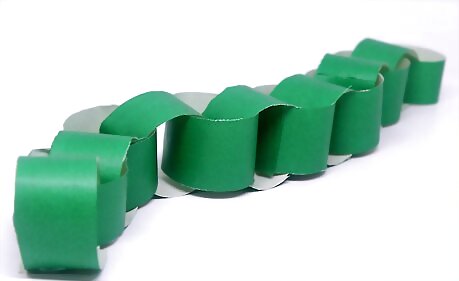 Create a paper chain link garland from strips of construction paper. Cut construction paper into 1 by 6 in (2.5 by 15.2 cm) strips. Overlap the ends of your first strip to form a ring, then staple it shut. Poke your second strip through the ring, then overlap and staple the ends as well. Keep adding rings until your garland is your desired length. Use multiple colors for a more interesting garland. They don't have be to Christmas colors; they can be all colors of the rainbow.