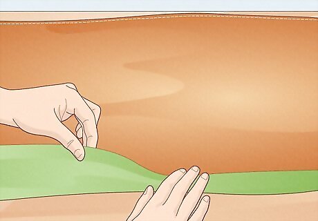 Line up your trim. Lay out your crinkle fabric, and line up your trim on the 36" (40.6 cm) edge that you plan to use for the opening. If using traditional fabric (as opposed to a feather boa) fold the trim in half short-ways, so that 2.5" (6.35 cm) of trim falls on each side (front and back) of your crinkle fabric. If you are using a feather boa or other non-traditional material, you will attach the material to the outside edge of your crinkle fabric, instead of folding it over.