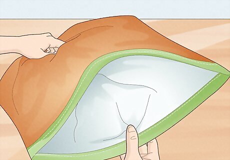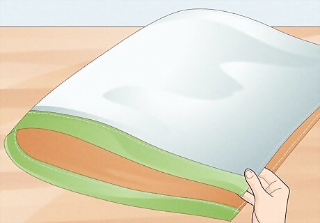 Fold your crinkle fabric in half the "wrong" way. The final stage in creating your crinkle toy is to sew your fabric into a sack. In order to do this, you will fold your fabric in half the wrong way (so that the fabric you want on the outside is on the inside).