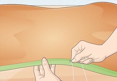 Attach the trim to your crinkle fabric. Using your needle and thread, carefully attach your trim to your crinkle fabric. Be sure to sew along all four sides of your trim. It can be helpful to secure your trim with straight pins while you sew.