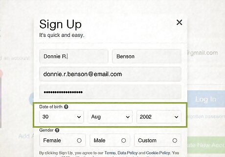 Set your birthday. Click the month drop-down box and select your alias' birthday's month, then repeat this step for the day and year drop-down boxes.