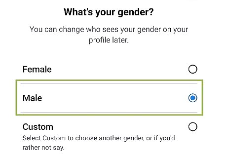 Select a gender and tap Next. Tap Female or Male, or choose Custom to select another option.