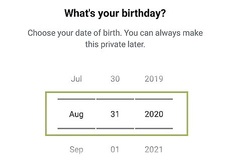 Set your birthday and select Next. Select a month, day, and year for your profile's fake date of birth.