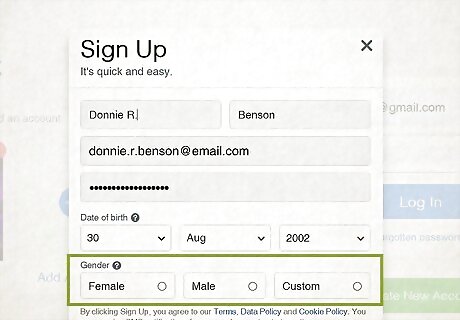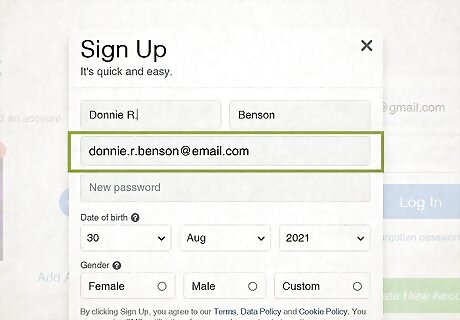 Add your fake email address. Type it into the "Mobile number or email" field, then re-enter it in the "Re-enter email" field below. Many providers allow you to create fake email addresses. If you don't have one already, create a disposable email with a fake name.