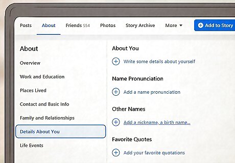 Show, don't tell. People rarely talk about things like their personalities and other mundane topics. Explicitly stating facts about yourself in hopes of filling in the blanks about your profile will only serve as a red flag for people in your Friends list. You can instead demonstrate things about your personality by adding information to your profile's "About" section, liking pages, updating your interests, and so on.
