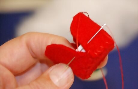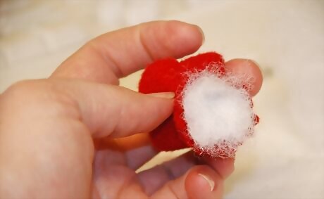 Using a few pinches worth of batting, “stuff” the large gathered circle.