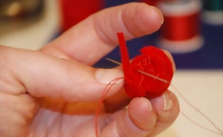 Coil the petal strip, fastening it along the bottom edge with stitches in matching thread color.