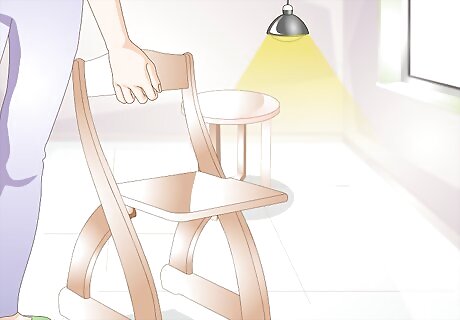 Choose the furnishings. If your chameleon has free range in a room, ensure that you don’t have anything that you wouldn’t want your chameleon climbing, walking, or pooping on. All surfaces -- tables, furniture, and window ledges -- should be smooth and easily cleaned. Plastic tables and chairs are good furnishings. Plastic coverings to cover your pillows are readily available at many home furnishing stores. Materials of plastic, Formica, bamboo, and stainless steel are best.