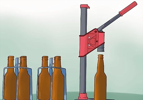 Package beer using low-cost, simple methods. You won't be kegging or bottling large quantities of beer, so package beer much as you would at home. It is a good idea to use a simple gravity wine filler to fill 22 oz bomber bottles with flat beer that is to be bottle conditioned. Use a homebrew bench capper and/or 5 gallon (18.9 L) cornelius-type kegs. Commercial breweries have successfully packaged five-barrel batches using Colonna bench cappers and gravity wine fillers. Of course, five barrels is considerably more than what a typical nanobrewery will produce in one or even two days. A self-stopping sanitary demand pump, such as demand diaphragm pump, can be used to keep the wine filler full when it is connected to a fermenter or brite tank. Be aware that if commercial Sanke kegs are used, they will need to be cleaned using an expensive keg cleaning machine or using a potentially expensive centrifugal pump and cleaning solution reservoir setup. Also consider how much space you’ll require to store bottled beer and kegs as well as empty bottles and kegs. Bottle and keg-conditioned beer (that is allowed to carbonate naturally in the kegs or bottles) will need to be stored for about three weeks.