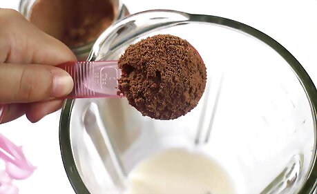 Put 2-4 TBS of hot chocolate powder in the blender and mix it well.