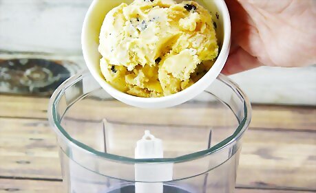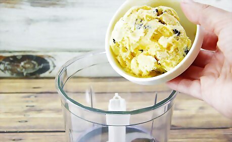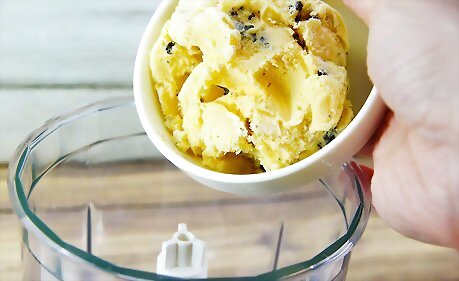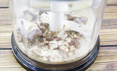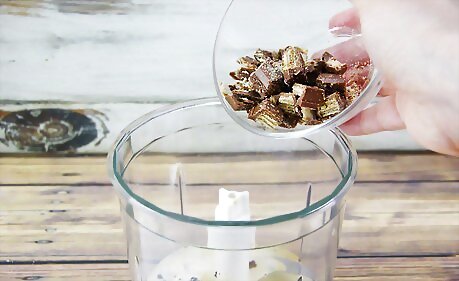 Add in the vanilla extract and Kit-Kat. Blend on medium speed for about two minutes. Add the peanut butter. Blend again.