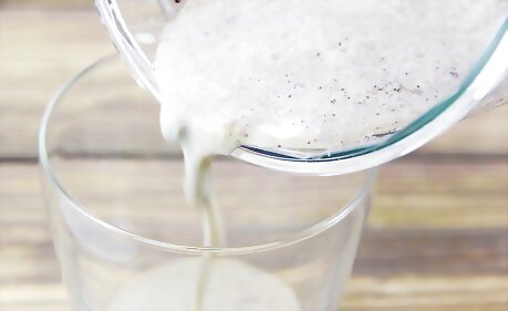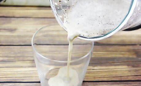 Pour the milkshake into four large, chilled glasses.