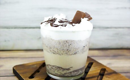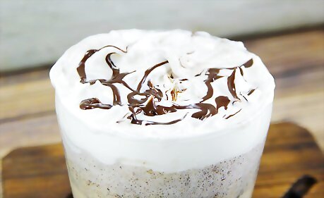 Garnish the milkshake with whipped cream and chocolate syrup.