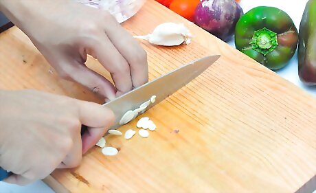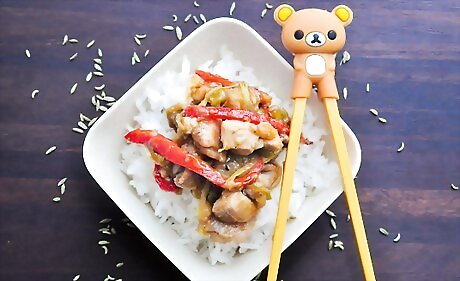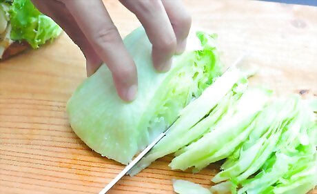 Select fresh vegetables. Fresh vegetables work best in a stir fry because they retain the liquid that is otherwise lost when defrosting frozen vegetables. Choose colorful vegetables such as red bell peppers, carrots, celery, broccoli or whatever vegetables you like best. Cut the vegetables into uniform sizes so that they cook evenly. Allow about 1 cup of chopped vegetables per person.