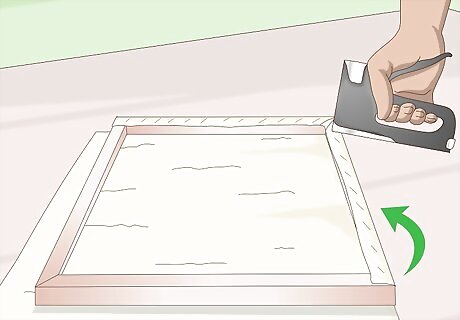 Cut the quilt batting. Lay your quilt batting on a flat surface. Measure, mark, and cut the quilt batting so that each edge is 1 inch (2.54 cm) longer than the corresponding dimensions of the canvas. You will pull this extra material up and around the wooden frame.