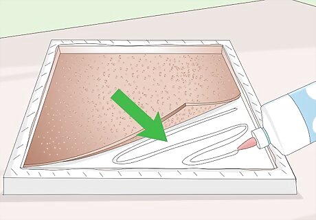 Glue the cork board to the back of your canvas. Flip over your canvas to expose the back. The cork board squares will sit inside the canvas' wooden frame. Coat the back of the canvas with a thin layer of glue and place the cork board squares. After placing each piece, run your hand over the cork board to remove air bubbles. Cut the cork board as needed. When you're done, the entire area inside the wooden frame of the canvas will be covered in cork board.