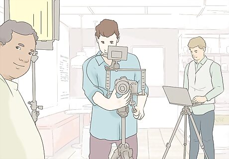 Gather and test your equipment. At the very least, you'll need a video camera. You will probably also need a tripod — to mount the camera for steady shots — lighting equipment, and sound equipment. Filming some "screen tests" would be a good idea. Give your actors the chance to practice while being filmed, and give the crew a chance to coordinate their actions.