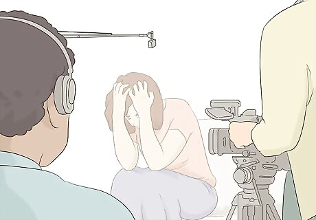 Cast your film. People in your community might work for screen credits in low-budget films. Of course, it would be advantageous to have a well-known name starring in your movie, but learning to play to the strengths of the actors you do have will ensure that you've got a great filmed product. If you need a cop character in your film, call one up and ask if he'd be willing to film a couple of scenes some afternoon. Just make sure that the movie doesn't involve anything illegal while the police officer is there, as this could not end well. If you need a college professor, contact the school. Test the range of your actors. If you know that one of them will have to cry in a sad scene, make sure he or she can do it before you contract for the project. Avoid scheduling conflicts. Make sure your actors can be available on-set when you need them. Be careful of stunts that may injure your actors. A big part of acting is nonverbal communication. Look for actors who can express how they're feeling and make you feel a certain way without having to say anything.