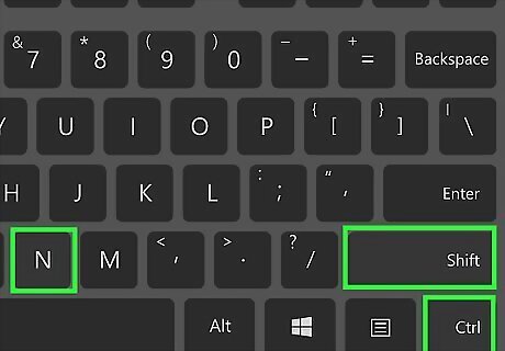 Press Ctrl+⇧ Shift+n at the same time. Pressing Ctrl + Shift + N together will create a new folder at the current location. The new folder has the generic name "New Folder," but you can change the name in a moment. Another way to create a new folder is to right-click a blank area, select New, and then Folder. If you're creating a new folder in File Explorer, there's another easy way to make a new folder: Windows 10: Click the New folder icon at the top of File Explorer. Windows 11: Click + New at the top-left corner of the window, then choose Folder.