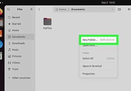 Choose New Folder. This will create a new, unnamed folder in the directory. Give the folder a name and press ↵ Enter to finalize the folder creation.