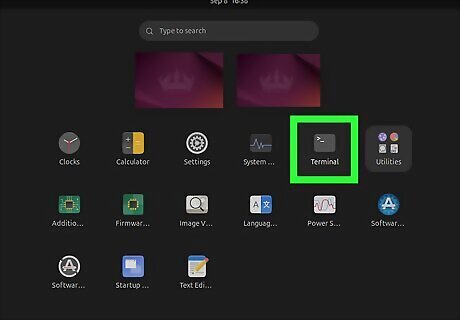 Open the Terminal. The Terminal is the command line on your Linux machine. To easily open Terminal, press Ctrl+Alt+T. You can also search for it in the application menu.