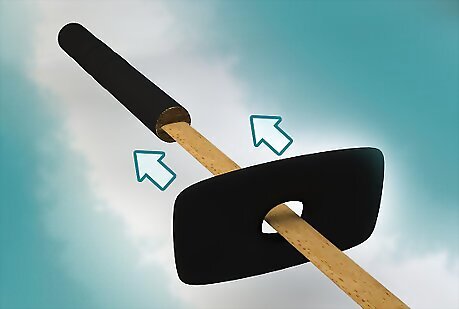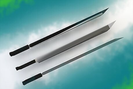 Cut the sword to length. Real ninja swords were short, allowing them to fight it close combat and move more easily. A good rule of thumb is for the blade to be the same length as the distance from your elbow to the tips of your fingers. Just be sure to leave an extra 4-8" for the handle on the end.