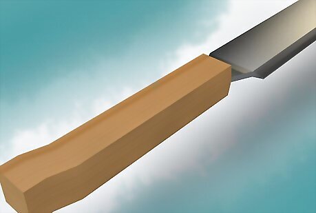 Carve the sword into the desired shape. Using a knife or whittling tools, carve the sword blade into the shape you want. Point the tip and add some curve if you want to, but real ninja swords probably had little curve and an angled point.