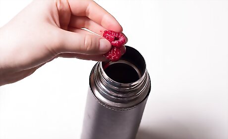 Place the raspberries in the cocktail shaker.