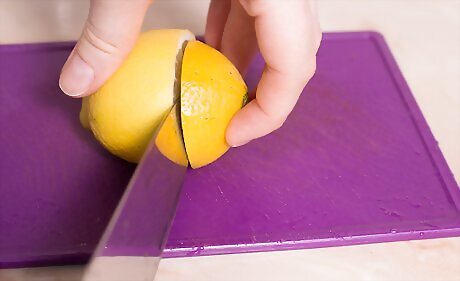 Prepare the limes. Cut a lime in half and set one half on the side. Take the other half and cut it into slices and chunks. Put the chunks in the cocktail shaker.