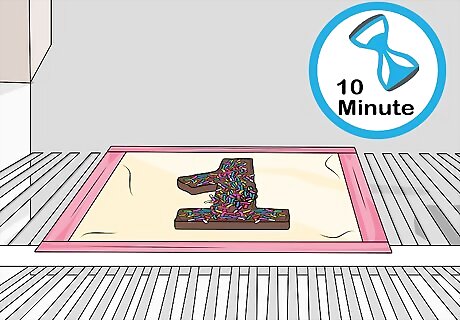 Tuck the number into the fridge for 10 minutes. Use the baking sheet to transfer the number to the fridge. Leave it there for 10 minutes so that the chocolate can harden.