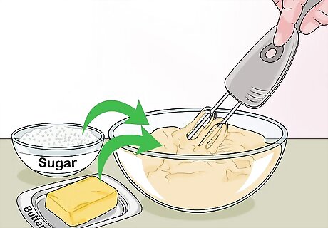 Cream the butter and sugar. Cut the butter into an electric mixer or food processor. Add the sugar, then beat them together using a medium speed setting for 5 to 8 minutes.