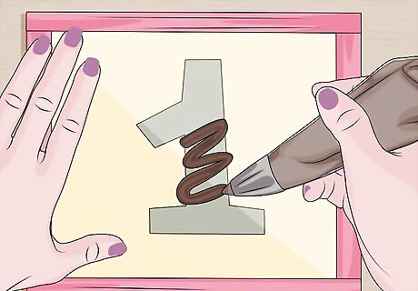 Trace over your template, then fill it in. Use the piping bag to outline your number with the melted chocolate. Next, fill the number in using a tight, zigzag motion. Make sure that there are no gaps visible.