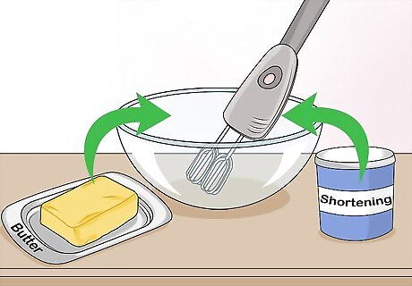 Cream the butter and shortening until they turn light and fluffy. You can do this in an electric mixer or a food processor. At the very end, stir in the vanilla extract.