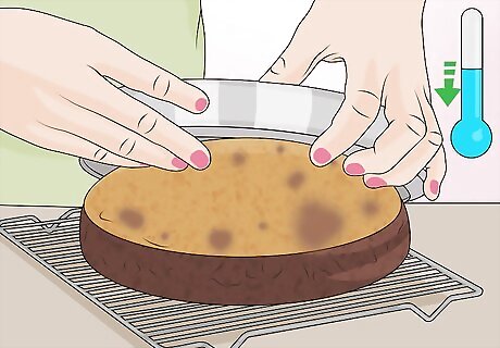 Let the cakes cool before removing them from the pans. Run a knife along the inside of each pan to loosen the cakes, then remove the cakes from the pans. If the cakes are still warm, let them finish cooling on a wire rack. They must be completely cool before you frost them.