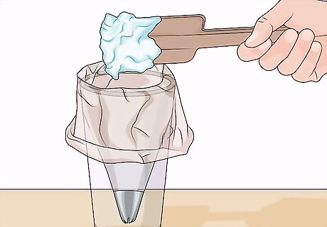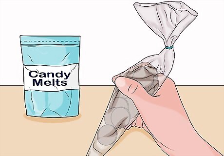 Place colored candy melts into a piping bag. Tie off the end or secure it with a rubber band. Don't cut off the tip yet; you will do that later. You can use any color you want, but white, pink, or light blue are great options. If you can't find any candy melts, you can use white chocolate chips instead.
