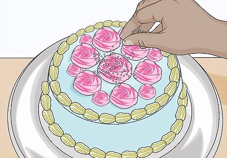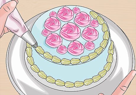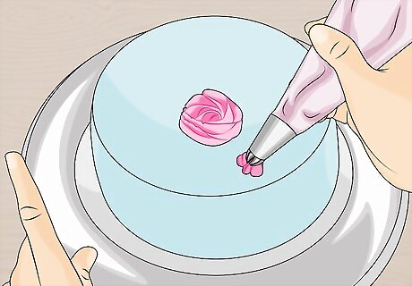 Continue making more roses. Work your way around the first rose that you made until you fill the top of the cake. Continue making more roses along the sides of the cake. You should be able to make about 2 to 3 rows of roses along the sides.