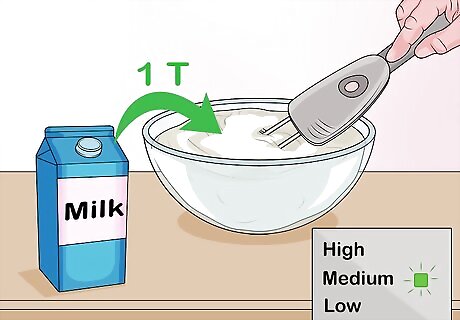 Mix the milk gradually. Pour in 1 tablespoon (15 milliliters) of milk, then beat the frosting using a medium speed setting. Add in the rest of milk, and mix again. Keep mixing until the frosting is smooth.