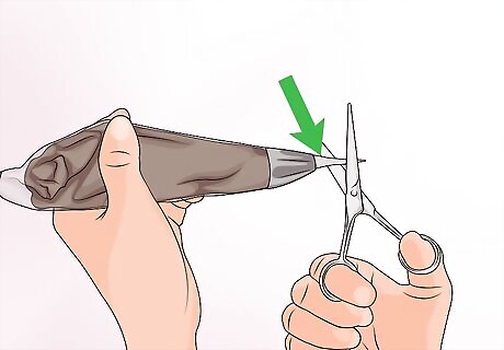 Cut the tip off with a pair of scissors. Only cut off a tiny bit, or the melted candy will come out too thick. in the next step.