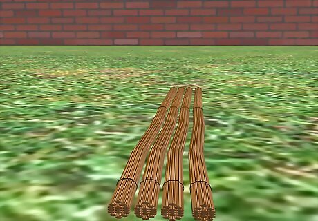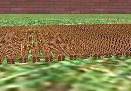 Using twine or wire, tie the bundles together, one at a time, and side by side. Keep them as flat as possible. By wrapping your wire or twine back and forth from opposite sides around each bundle, they will lay closer together and flatter.
