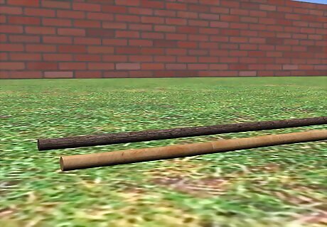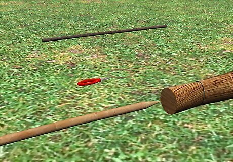 Sharpen the end of your "handle" stick so that it can be pushed up into the end of your bundles at the center. Push it about 6 inches (15 cm) deep between the center bundles, then tie it off securely with more twine.
