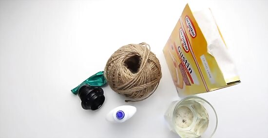 Prep the area and gather your materials. This DIY project is rewarding, but it is time consuming and messy. Clear a big, wide space and line your surfaces with a tarp or newspaper. Grab all your materials now and let's get started. You'll need: An inflatable ball (beach, exercise, or balloon) String (twine, hemp, yarn, etc.) White glue Corn starch Warm water Cooking spray Disposable gloves (if you don't want to get in on the action yourself)