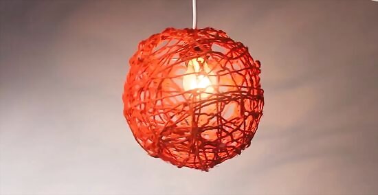 Feed the string into the glue mixture. Go about a yard or two at a time, squeezing off the excess with your thumb and forefinger. Wrap your string around the ball haphazardly, criss-crossing in whatever pattern (or non-pattern, really) you think looks good. One 220 foot (67.1 m) spool should suffice for an average-sized beach ball. Don't cover the circle you made! That is a no-go zone. You need that open and string-free for attaching later.Watermark wikiHow to Make a String Pendant Lamp If you are using a light-colored string, use as much string as you want. But know that if you are using a dark-colored string, you may want to use less so the light can shine through once in use.Watermark wikiHow to Make a String Pendant Lamp Let it dry overnight. When you find it in the morning, it'll be rock-hard and nothing like you left it.Watermark wikiHow to Make a String Pendant Lamp