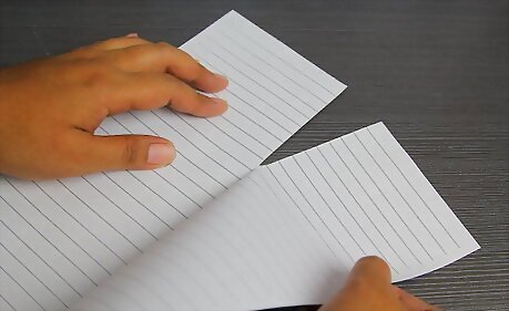 Grab a sheet of computer paper or lined/unlined notebook paper and fold it down the middle. Make sure you don't tear it from one corner to the opposite corner (thereby making a triangle). Fold it as if you were making a paper-styled greeting card.