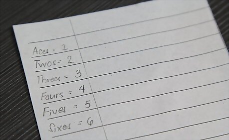 Write the numbers 1-6 on each line of the paper (since the highest numbered side on any pair of dice is 6). This article will come back to point totaling (another column later).