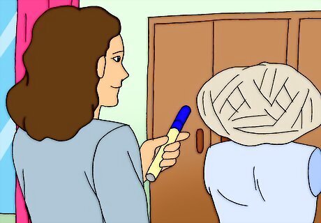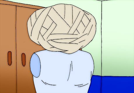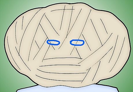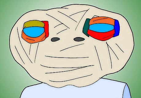 Wrap entire head with cotton batting and masking tape in the shape of E.T.'s head. Take time and make it look exactly like it did in the film. Make sure to leave holes for breathing