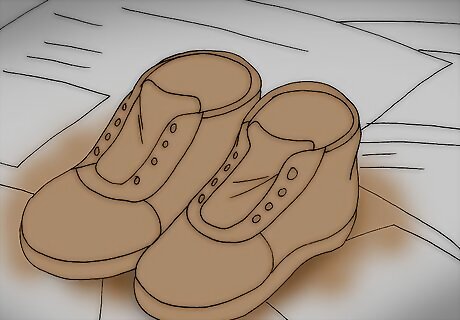 Remove the shoes' strings and spray paint the shoes. Let them dry, then put the shoes' strings back in.