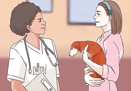 Take your dog to the vet. If your dog is showing any odd behavior, you should take them to the vet for a check up. Things like aggression, barking, excessive chewing, changes in eating or drinking habits, or inability to be house trained may point to a medical problem. It's a good idea to get your dog a checkup just in case. If you haven't taken your dog to the vet in awhile, you may want to get them a checkup when you decide to bring them indoors to ensure they remain healthy. Make sure that your dog is up to date on flea and tick prevention at this time, too, to avoid bringing unwanted bugs into the home.