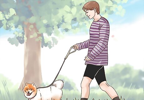 Exercise your dog. Dogs who are used to being outside may be more used to running around the yard and expending their energy. When you bring them indoors, they may not get the same level of exercise. This can cause them to bark more or chew on things. Make sure you are helping your dog get enough exercise. This may mean you need to take your dog walking every day. You can also take them into the yard and let them run around or play fetch with them.