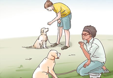 Take the dog to obedience classes. If you are afraid your dog won't behave well in the house, or if you can't seem to get them trained, then you may want to consider getting help. You can enroll your dog in obedience classes or hire a professional dog trainer. Professional training can help your dog become house trained, learn basic commands, and stop barking or chewing. Make sure you only hire trainers who use humane training techniques. Your dog should not be harmed or treated badly while learning. Make sure the training classes use positive reinforcement and praise.